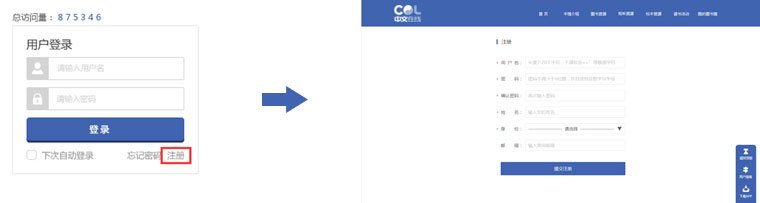 如果学校管理员已经导入过用户名单,请根据学校管理员提供的账号和密码登录本平台。如果学校管理员未导入过相关用户,请点击首页登录栏下方的“注册”按钮,按照提示进行填写相关信息(标*为必填项),点击“提交注册”即可完成。注册完成后,管理员审核过后即可进行阅读。